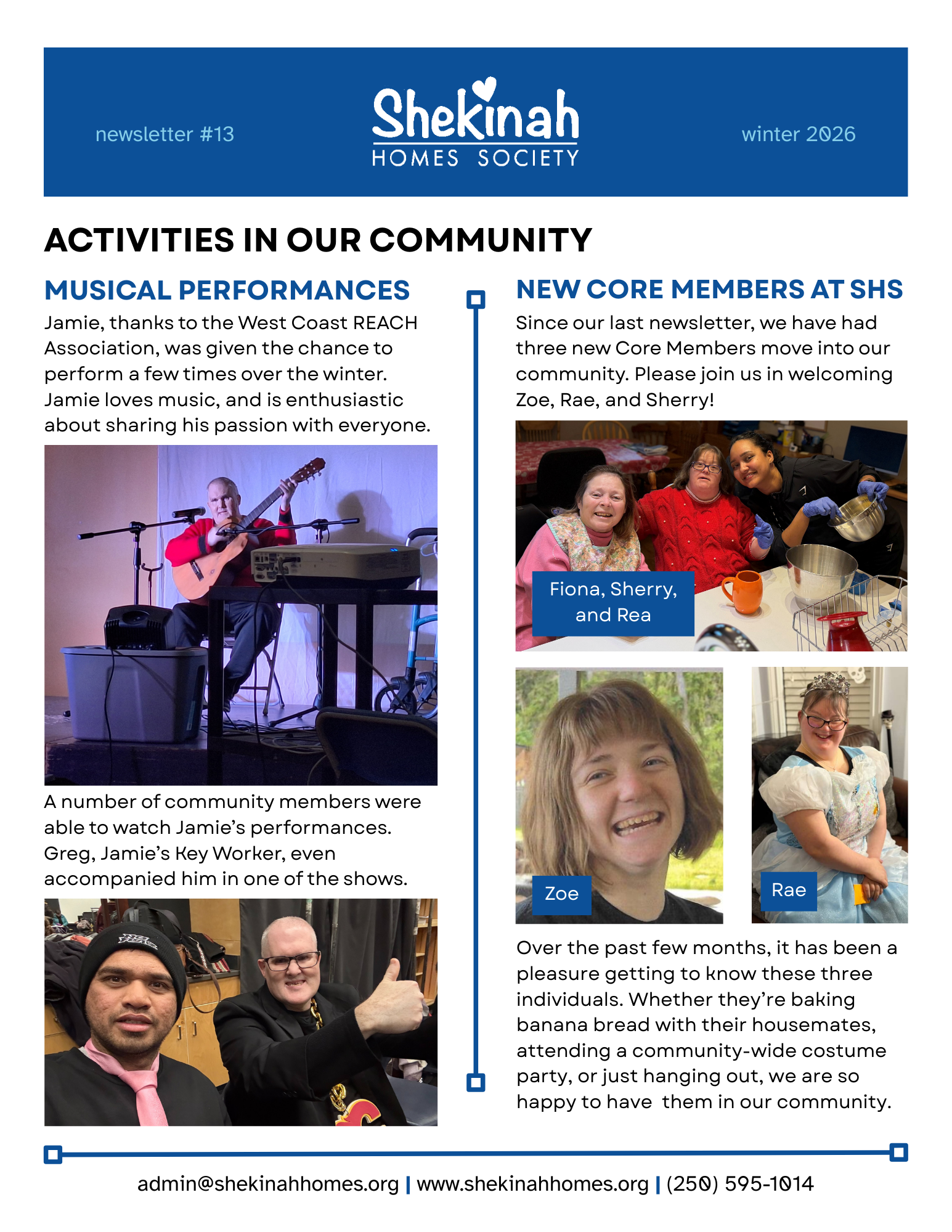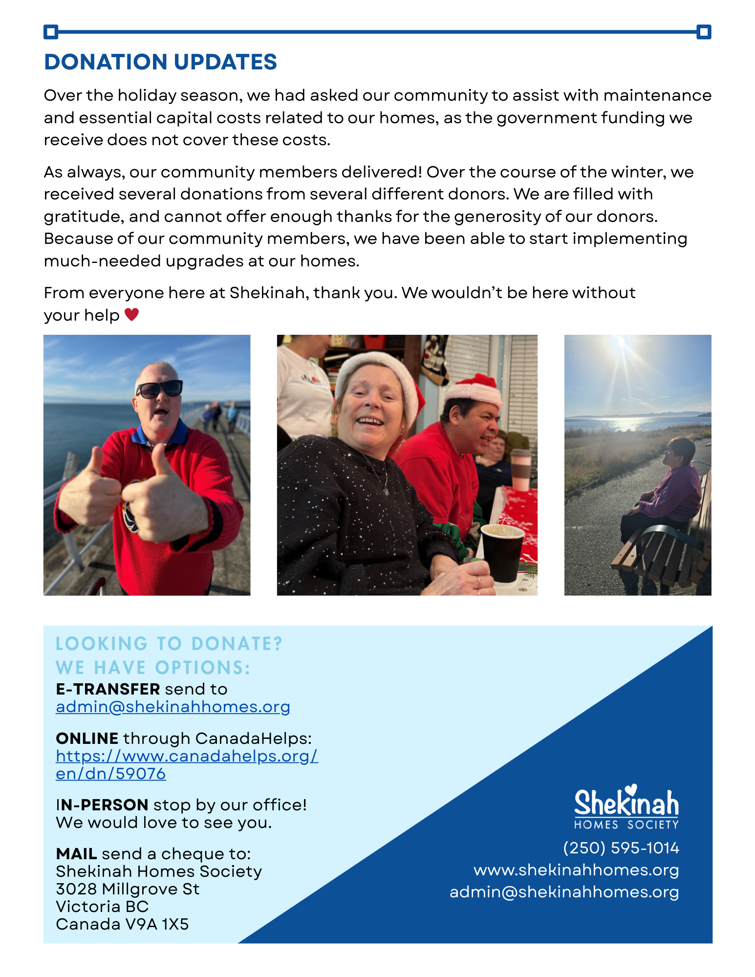 Shekinah Homes Society is a non-profit community of people residing in Victoria, British Columbia on Canada’s idyllic west coast. We provide a home and family environment to adults with a diverse spectrum of disabilities.